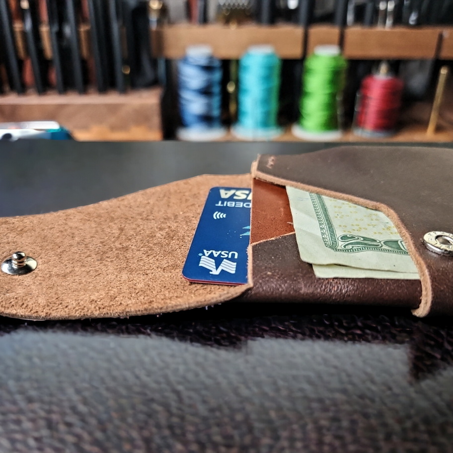 The Lieutenant Colonel EDC wallet is an exceptional choice for those who desire a medium-sized wallet that can carry cards, cash, and coins. It's designed to provide both capacity and utility, making it an ideal choice for everyday carry. Additionally, the wallet comes with an extra card slot in the rear, allowing for quick access to your most frequently used card. The wallet is customizable, so you can make it truly yours. This wallet is an excellent choice for anyone looking for a wallet that is both stylish and functional.